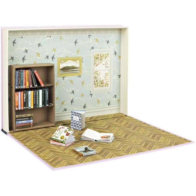 Full instructions are included, and even the box itself transforms into the perfect setting for your itty-bitty books. Or, you know, Barbie’s house.