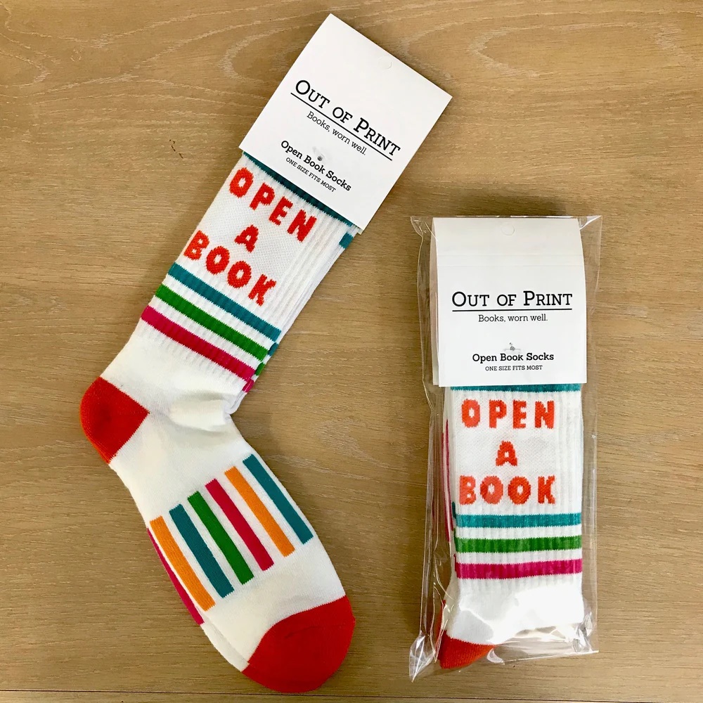 These Out of Print socks function as both practical footwear and a regular reminder to your teens!