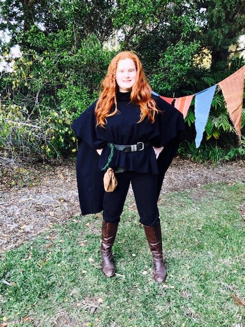 When I think of Gwyn, I think of dark shades because she goes where she wants, when she wants, often at night. With black pants, black shirt, boots, and belt, Lola has channelled Gwyn’s inner fierceness beautifully.